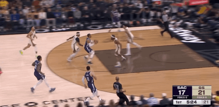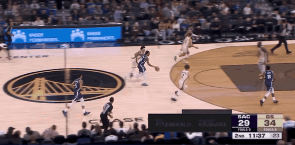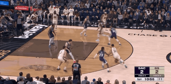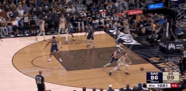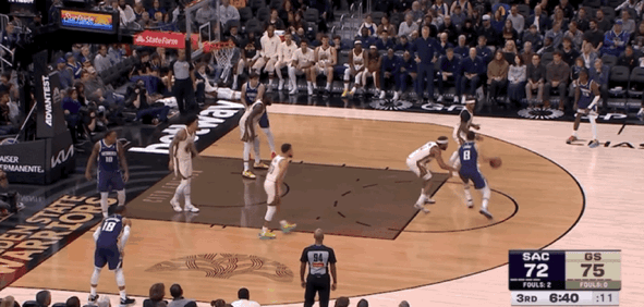 末节比赛开始,桑托斯突破上篮,波杰姆斯基负角度极限进球,威少反手上篮得手,小佩顿空切得分。勇士打出一波9-0的进攻高潮,两队分差迅速突破20大关,威少一级恶意犯规侵犯波杰姆斯基。威少突破上篮得手,桑托斯空切上篮,波杰姆斯基暴扣打进连得4分。勇士进一步扩大领先优势,比赛提前失去悬念,并在比赛还剩下5分40秒逐步换下库里等主力,最终勇士捍卫主场大胜国王。