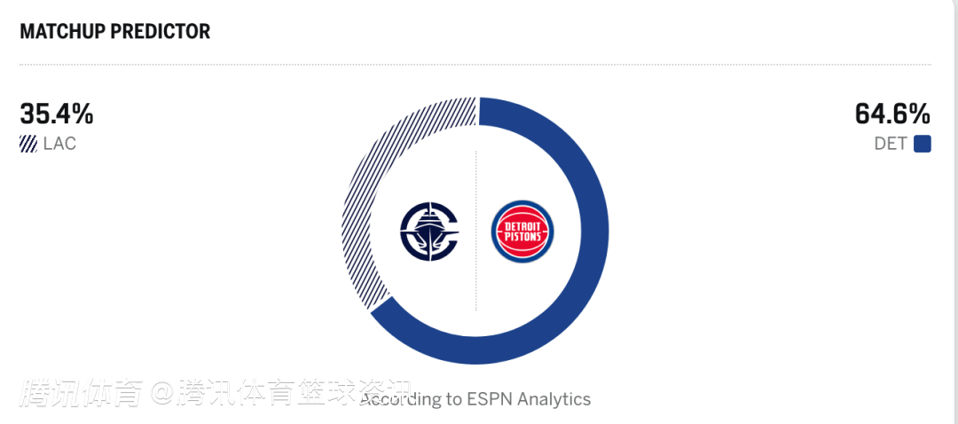 快船35.4%,活塞64.6%