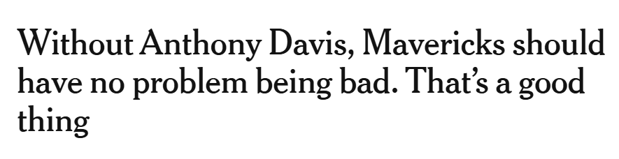 独行侠可以在今夏重启戴维斯的交易谈判。而在接下来的四个月里,球队最该做的事,就是摆烂输球——缺少这位年薪5400万美元的核心球员,做到这一点并非难事。