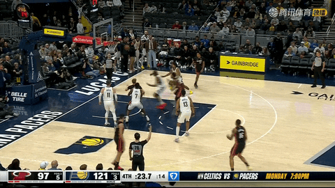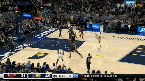 热火首节三分线外8投全失,全队24投仅6中,首节结束时比分被拉开到18:36,步行者领先18分。