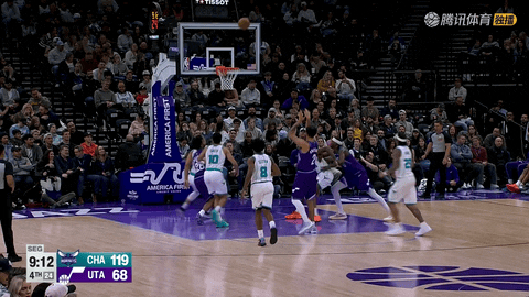上半场结束时,黄蜂三分线外36投16中,36次三分出手追平了NBA半场三分出手纪录,并以77-38大比分领先爵士,为之后150-95的狂胜奠定基调。