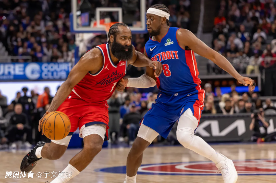 哈登背靠背迎来3连客之旅的最后一战,他明显受到很大的体能影响,面对没有坎宁安的活塞手感冰冷,全场只有20中4,三分7中1,全场被对手封盖7次,并且出现5次失误。