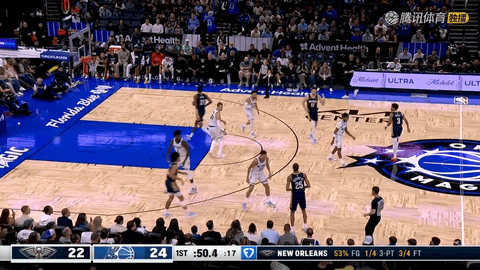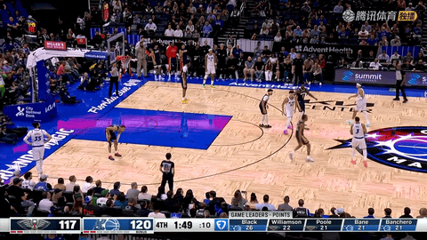 第四节还剩1分13秒时,锡安在进攻中失误,球被布莱克抢断,此时比分为鹈鹕117-122魔术,分差仅为5分。
