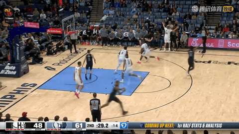 第二节还剩2分29秒到还剩19秒期间,篮网凭借三次进攻篮板拿到6分。还剩2分06秒时,杰明命中三分,随后在还剩19秒时,克拉克斯顿突破打板抛投命中,将分差从15分追至11分。半场结束,篮网50:61落后灰熊。