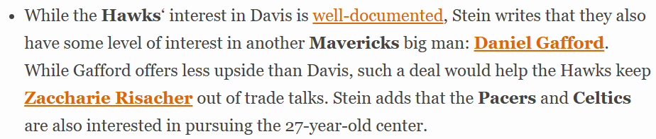 北京时间1月12日,据名记Marc Stein报道,老鹰与独行侠之间围绕安东尼-戴维斯的交易谈判依旧停滞不前,关键原因在于老鹰的强硬态度,他们从未考虑将前状元秀里萨谢,与波尔津吉斯、肯纳德的到期合同打包,作为换取浓眉的筹码。