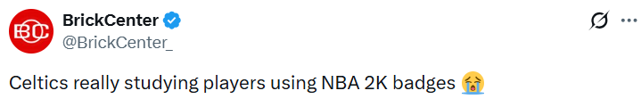 北京时间1月12日,外媒BrickCenter在社交媒体上晒出了一条短视频,在视频中可以看到,凯尔特人队的工作人员居然利用查询篮球游戏NBA2K中球员徽章的方式,来分析研究对手。
