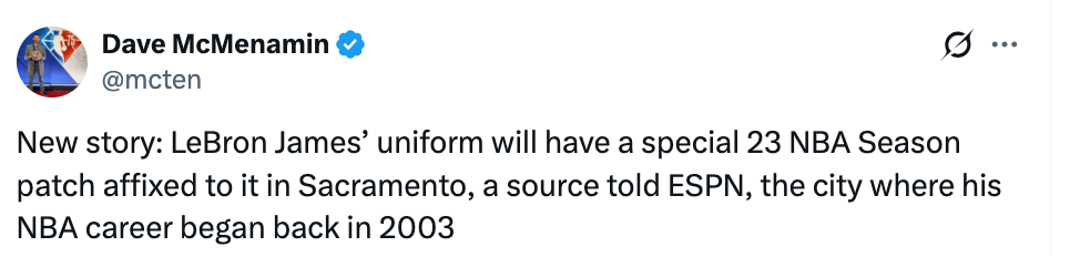 北京时间1月13日,据湖人队记DaveMcMenamin报道,消息源透露,从今天湖人对阵国王的比赛开始,詹姆斯的球衣上将配有特殊的纪念补丁,以纪念他创纪录的个人第23个NBA赛季。