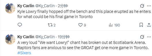 在比赛结束前1分57秒,纳斯终于满足了猛龙球迷的要求,他用洛瑞换下马克西。而在洛瑞上场时,全场球迷集体为他送上掌声,马克西也带动球迷,让欢呼声变得更大。