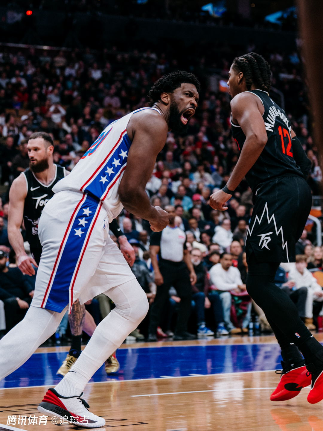 易边再战,第三节76人进攻大幅下滑,单节19-26被猛龙追回7分,末节猛龙继续反扑却突然集体哑火,76人一直保持两位数的领先优势,3分58秒恩比德强硬突破得分,之后马克西轰进三分回击猛龙,恩比德罚球得分,比赛还剩1分57秒猛龙撤下主力,恩比德提前打卡下班,洛瑞在全场球迷的欢呼下登场,最终76人拿下胜利。