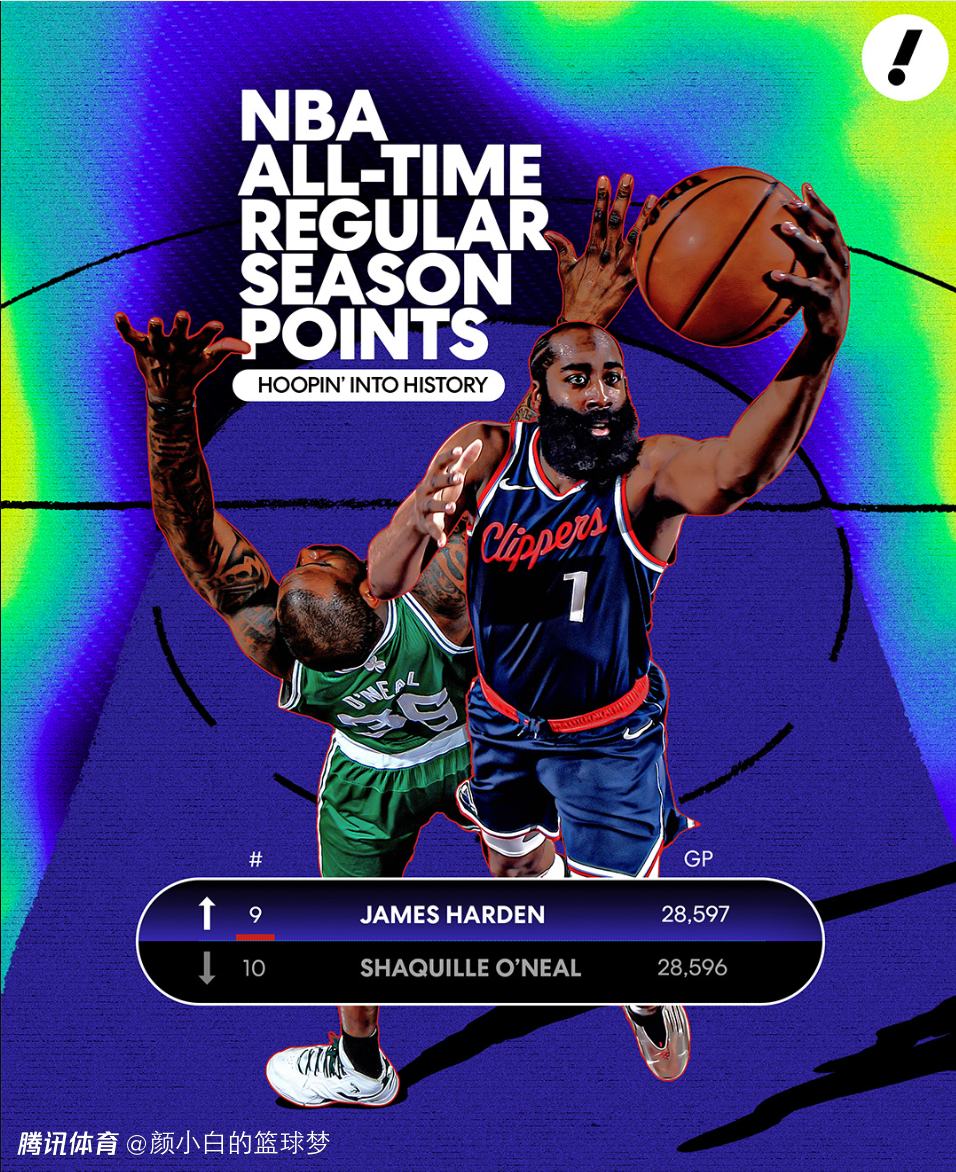 第三节哈登得分后,他的历史总得分28597分正式超越奥尼尔升至历史第九位,随后哈登打开了得分账户,单节8中4+三分2中1拿到11分1篮板4助攻3抢断,哈登攻防一体的表现令人惊叹,36岁的老头太拼了。