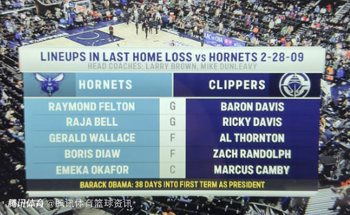 当时快船队的阵容为拜伦-戴维斯、里基-戴维斯、索顿、兰多夫、坎比。黄蜂队的阵容为费尔顿、拉贾-贝尔、杰拉德-华莱士、迪奥、奥卡福。美国当时的总统还是奥巴马,他刚当选总统38天。