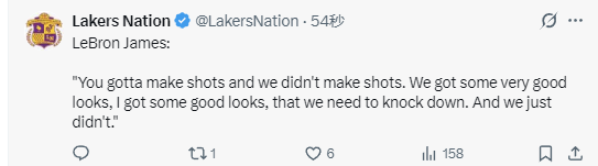 北京时间1月13日,NBA常规赛继续进行,湖人队112-124不敌国王队。勒布朗-詹姆斯此役得到22分4篮板3助攻1抢断,赛后他接受媒体采访。