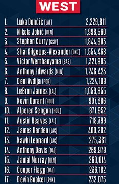 在全明星球迷投票次轮结束后,布克以232075票排名西部第17位。布克此前曾4次入选全明星。