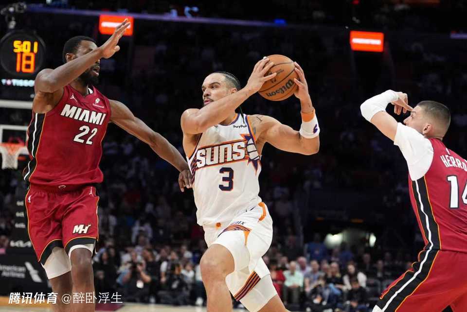 太阳过去3场连赢灰熊、尼克斯与奇才收获3连胜,热火过去3场连输森林狼、步行者与雷霆遭遇3连败。本场太阳缺少杰伦-格林,热火缺少罗齐尔。首节开局双方缠斗至9-9,热火连得4分,布克两罚全中,阿德巴约引领一波12-4攻势扩大10分优势。太阳回敬一波8-2攻势追到仅差4分,热火回敬一波9-5攻势拉开比分,首节比赛结束热火36-28领先太阳。首节热火26中16超过6成准星,其中三分12中4,阿德巴约5中4得到10+2+2;太阳27中10不足4成准星,其中三分11中4,阿伦3记三分11分。
