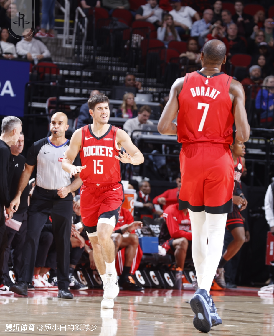 第二节火箭在防守端出现了巨大的问题,单节公牛23中14,命中率高达60.9%,火箭队这边只有19次出手他们还是过多的低级失误,杜兰特半场拿到12分8篮板,申京半场13分5助攻4篮板球队却被反超了,乌度卡暂停时的肢体语言已经非常不满,进入中场休息肯定会要求提升防守。