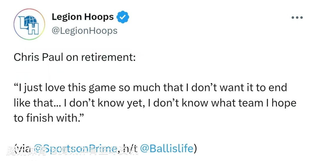保罗坦言:“篮球是我无法割舍的热爱,每日的训练从未停止,我不愿就这样告别赛场。陪伴孩子的时光固然美好,但关于生涯的最后一站,我仍在寻找答案。”保罗此前还更新个人社媒,晒出了自己在训练中自抛自扣的视频。