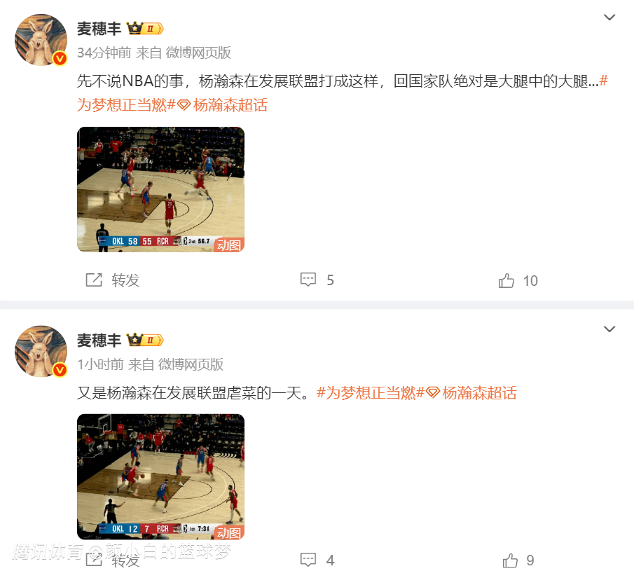 麦穗丰:又是杨瀚森在发展联盟虐菜的一天,先不说NBA的事儿,杨瀚森在发展联盟打成这样,回国家队绝对是大腿中的大腿。