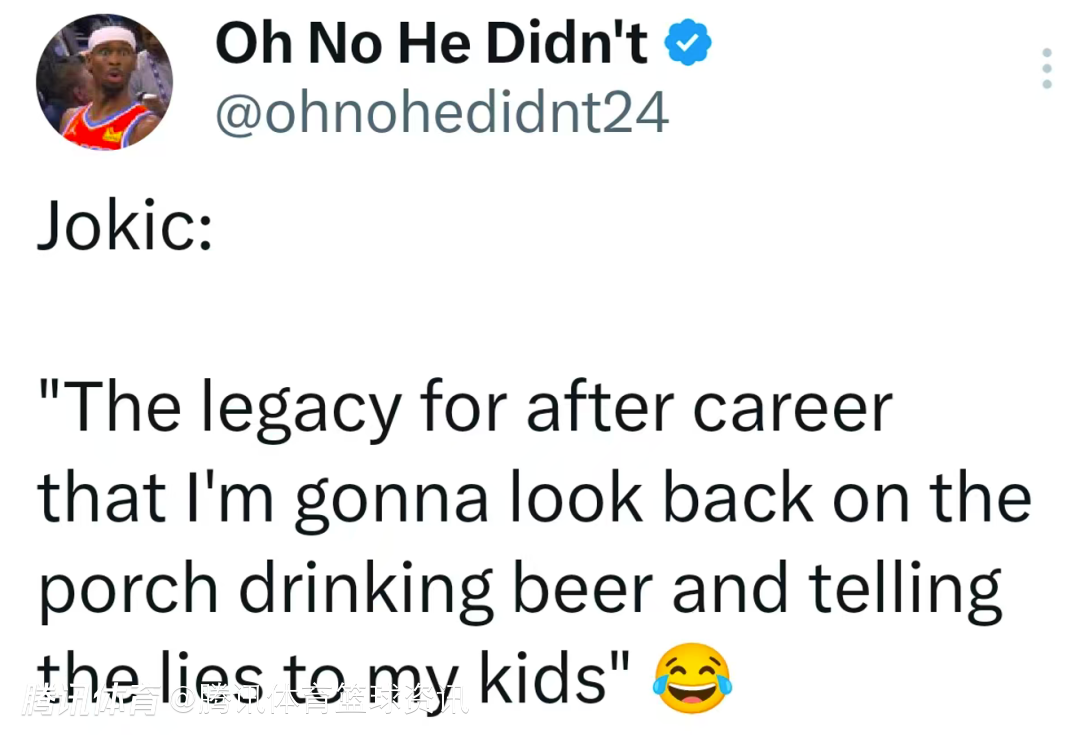 被问及成为NBA历史中锋助攻王是否有特殊意义时,约基奇表示:“我一直认为这类荣誉属于生涯遗产,需等退役后再回味。以后我会看着数据板,喝着啤酒,跟后辈们聊聊这些过往。”