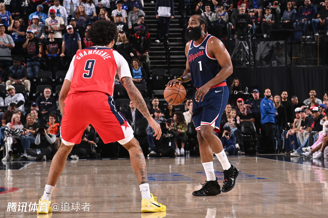 末节哈登坐镇替补席休息,巴图姆再中三分,小卡连中两记三分以及造犯规罚球得分,带队一波攻势再次领先到两位数,奇才艰难得分,小卡再中三分;奇才6-0继续追分,哈登罚球止血,小卡无视防守轰进三分,比赛还剩1分多钟,小卡提前打卡下班,最终快船拿下胜利。