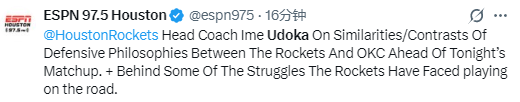 北京时间1月16日,NBA常规赛继续进行,火箭对阵雷霆。赛前,火箭主帅乌度卡接受媒体采访。