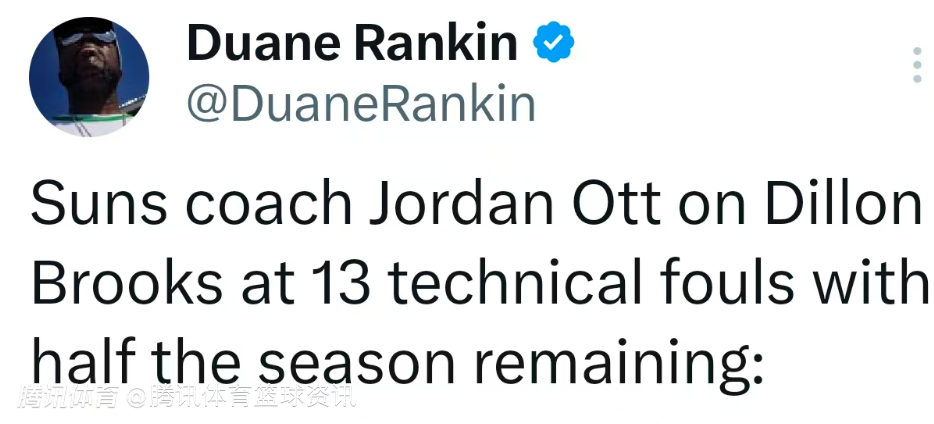 北京时间1月16日,NBA常规赛继续进行,太阳对阵活塞。赛前,太阳主帅奥特接受媒体采访,谈到狄龙-布鲁克斯在赛季过半时已累计13次技术犯规的情况。