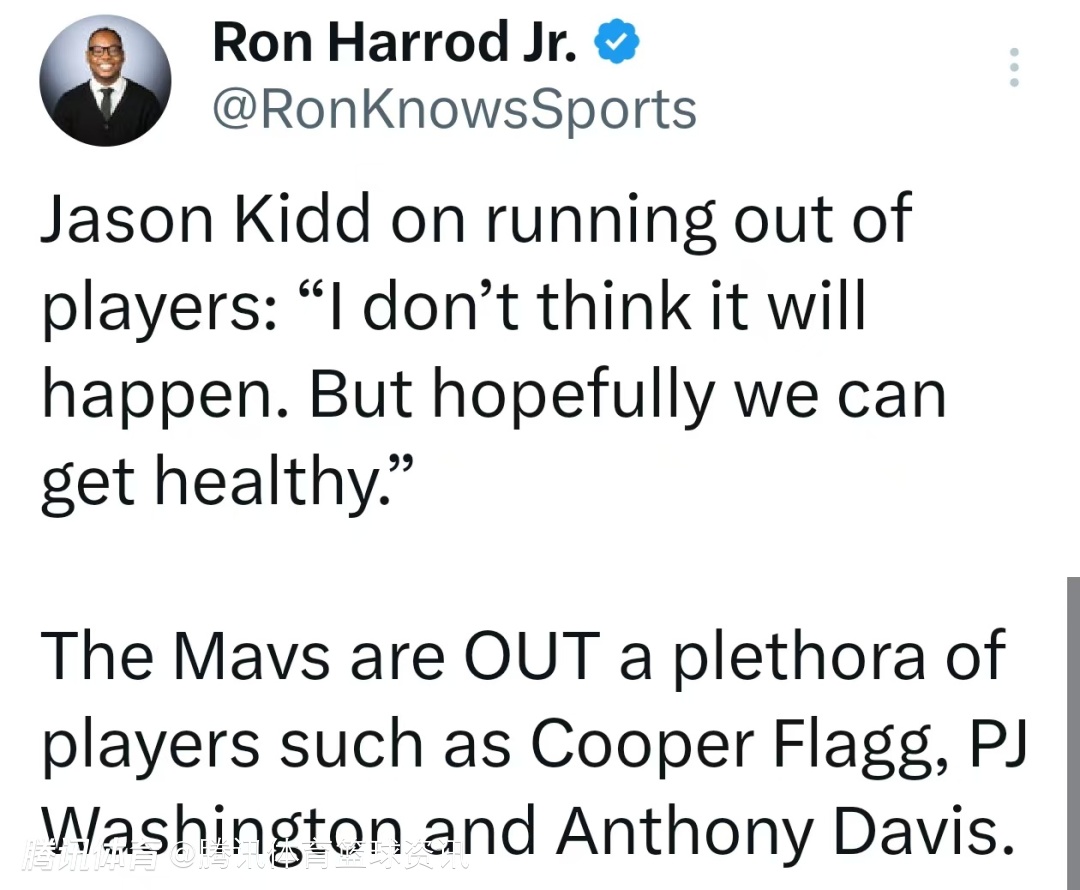 基德在谈到球队球员短缺的问题时补充道:“我认为不会出现无人可用的情况,但还是希望大家能尽快康复。”
