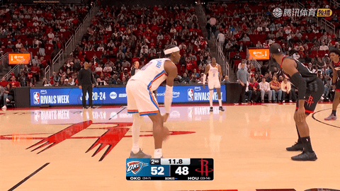 第二节结束前1秒,亚历山大命中压哨三分,将比分从52比48改写为55比48,为雷霆带着7分优势进入下半场奠定基调。