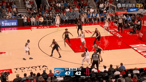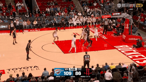 第二节中段还剩6分22秒到还剩5分03秒,火箭连续5次进攻得分,将比分从36-30追至39-38,小史密斯两罚全中,申京连续补篮得手并再进一球,杜兰特两罚全中打出8-3攻势。
