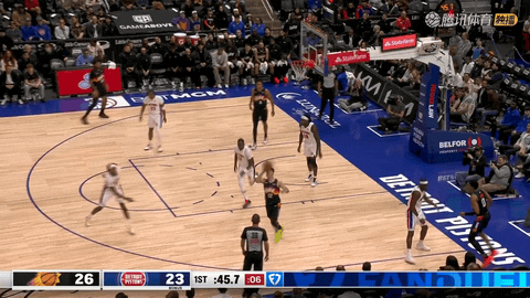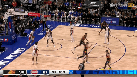 节末还剩1秒时,霍兰二世突破上篮命中,将比分从89-89改写为90-89,活塞带着1分劣势进入末节。