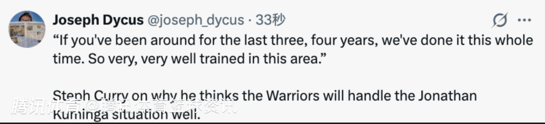 最后谈及库明加的情况,库里表示:“如果你关注了过去三四年的情况,就知道我们一直都在处理这类问题。所以在这方面,我们非常非常有经验。”