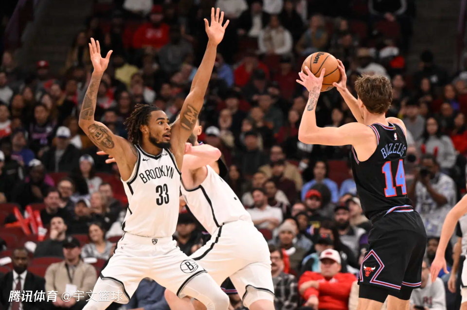 公牛上场比赛迎来科比-怀特的回归,他虽然投篮手感不佳,但是他给队友创造很多空位投射机会,和特雷-琼斯共同扛起球队的组织任务,并且在最后时刻助攻武切维奇完成准绝杀投篮。虽然没有吉迪的日子,公牛在进攻端的组织串联有所欠缺,偶尔会出现进攻停滞的情况,但他们将重心转移到锋线上,他们会占有尺寸优势,可以通过无限挡拆换防形成单打或空位出手机会,这让不擅长防守的篮网会感到很头疼。