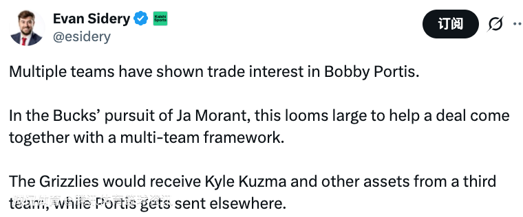 在雄鹿队追求莫兰特的过程中,这一点显得尤为重要,波蒂斯的存在有助于在多方交易框架下促成这笔交易。灰熊队将从第三方球队得到库兹马和其他资产,而波蒂斯则会被送往其他球队。