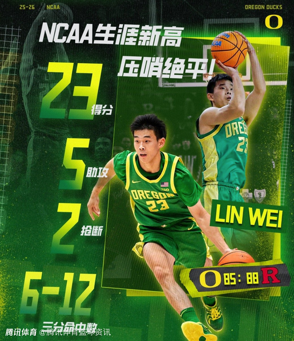 过去三场比赛,林葳得分均来到两位数,前不久对阵罗格斯大学的比赛中,他拿到了NCAA生涯新高的23分。