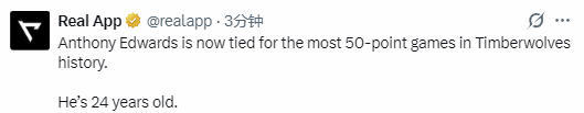 根据数据统计显示,爱德华兹单场50+的次数已经追平了唐斯,并列森林狼队史第1。