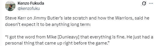 在谈到巴特勒临时缺阵的情况时,科尔说道:“我还没和他直接通话,但已经从邓利维那里得到了消息,一切都没问题。他只是在赛前突发了一些私事,不过现在已经处理好了,没什么大碍。我认为他不会长期缺阵。”
