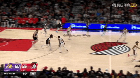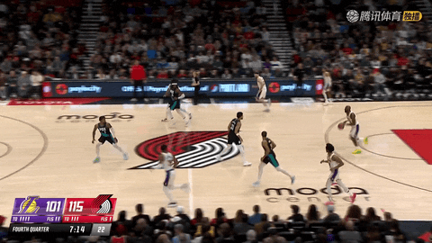第三节还剩4分2秒至1分23秒,开拓者连续通过进攻篮板转化得分,格兰特罚球、乐福撤步跳投和威廉姆斯三世补篮相继命中,但湖人也由八村垒、蒂米连续回应,将比分追到88:104。三节战罢,湖人90:107落后。