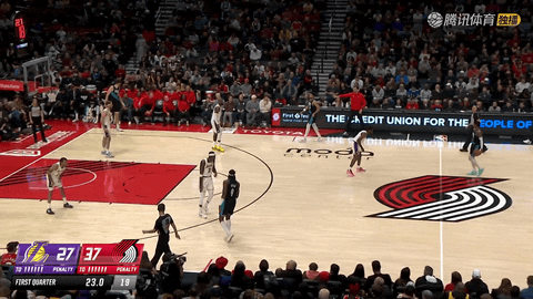 第一节还剩8分02秒时湖人以12-8领先,随后直到第一节结束前13秒,开拓者在约8分钟内打出32-17的攻势,将比分从12-8反超到40-27,直接把局面从落后2分改写为领先13分。