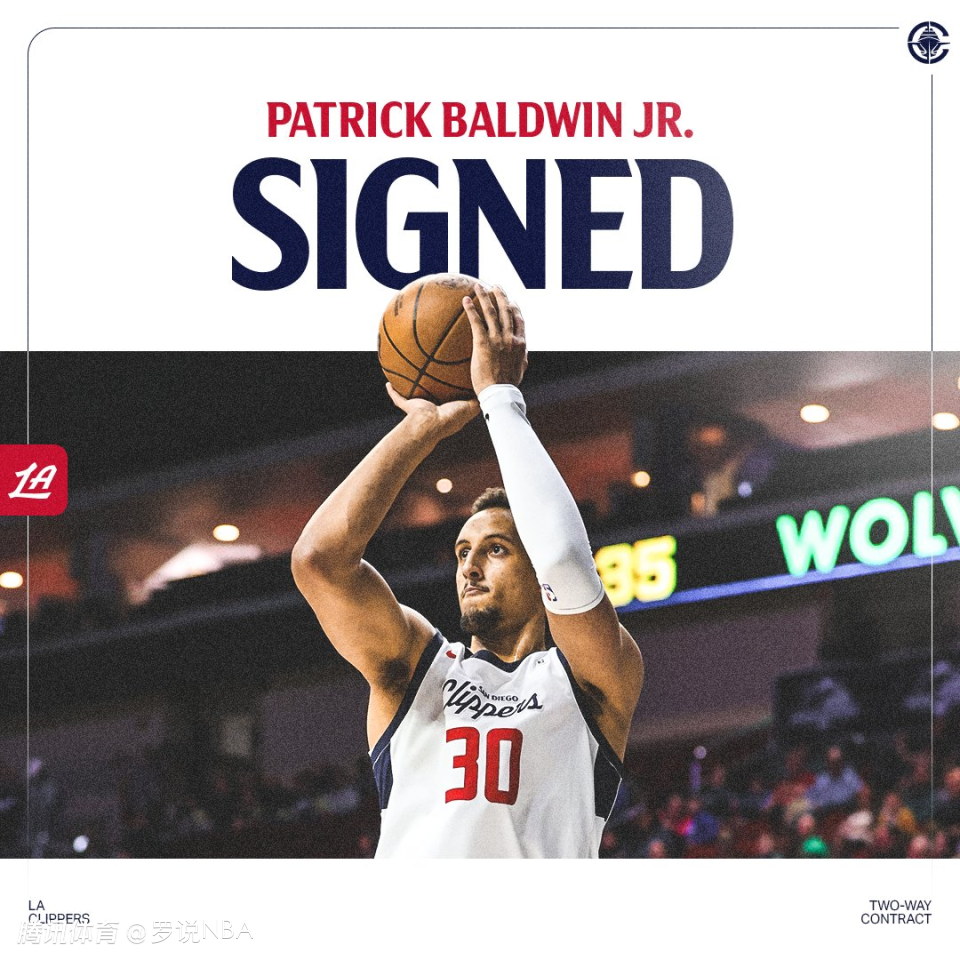 快船队与大前锋小帕特里克-鲍德温签下一份10天短合同,不过鲍德温要等到周二球队对阵奇才的比赛时才能正式归队。签下鲍德温后,快船队的标准合同球员人数达到15人,这让球队在阵容使用上获得了更大的灵活性,不仅可以在同一场比赛中派上两名双向合同球员科比-桑德斯和乔丹-米勒,还能启用双向合同后卫小泰泰-华盛顿。