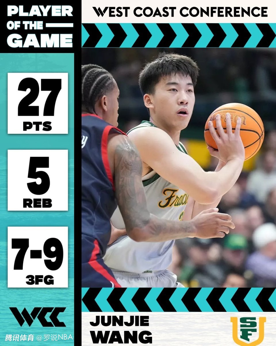 北京时间1月19日,NCAA比赛继续进行,旧金山大学85-80险胜华盛顿州大。中国球员王俊杰首发出战21分钟,得到15分1篮板1抢断1失误,他的15分都来自上半场。他在上半场发挥出色,投篮4中4(全是三分球),罚球3中3,。下半场没有出手,得分挂零,出现两次不应该的失误,最后8分36秒被主帅弃用。