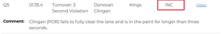 国王和开拓者裁判报告显示,仅出现的一次漏判发生在距离比赛结束还剩1分35秒,国王124-127落后3分,格兰特禁区强硬得分,裁判报告指出,克林根未能及时完全撤出禁区,在油漆区内停留超过三秒,这应该吹罚克林根进攻三秒违例,这一次漏判是国王吃亏。