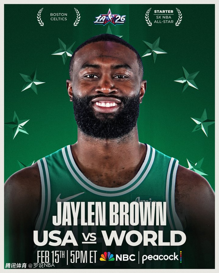 杰伦-布朗成为东部全明星首发,这是他生涯第5次入选全明星,也是连续第4年入选。赛季至今,杰伦-布朗场均29.7分6.4篮板4.8助攻。