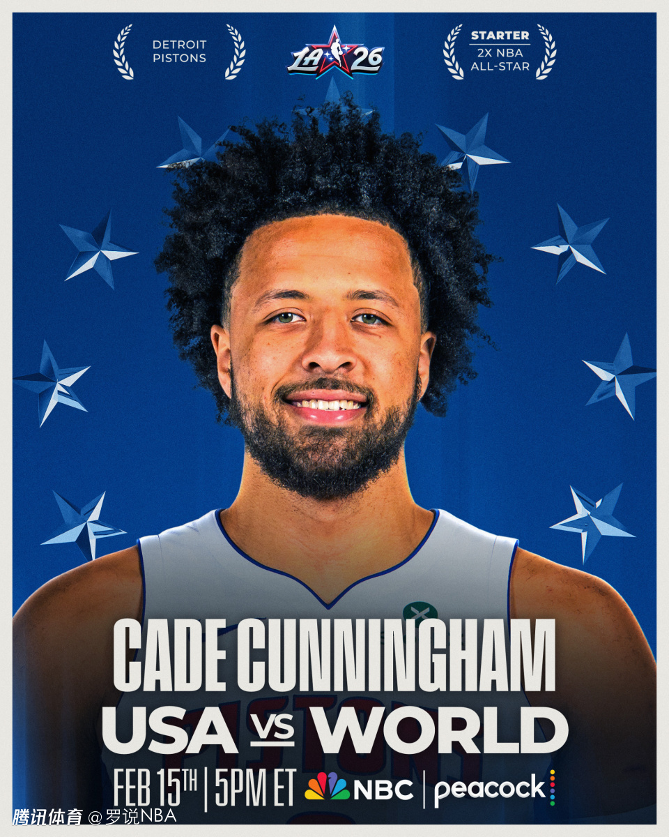 坎宁安成为东部全明星首发,这是他生涯第2次入选全明星,也是连续第2年入选。赛季至今,坎宁安场均25.9分6.0篮板9.6助攻。