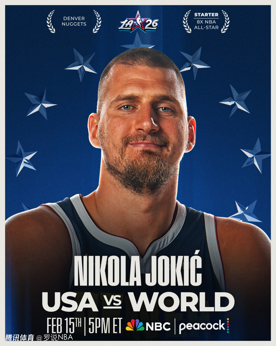 约基奇成为西部全明星首发,这是他生涯第8次入选全明星,也是连续第8年入选。赛季至今,约基奇场均29.6分12.2篮板11助攻,其中场均篮板和助攻均排名联盟第一。