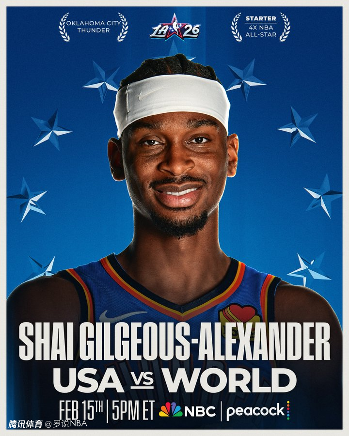 亚历山大成为西部全明星首发,这是他生涯第4次入选全明星,也是连续第4年入选。赛季至今,亚历山大场均31.8分4.4篮板6.2助攻。