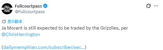 北京时间1月20日,据记者Chris Herrington报道,灰熊队仍有可能交易莫兰特。