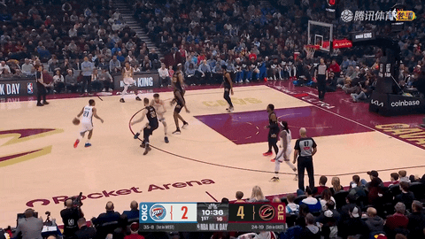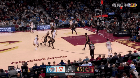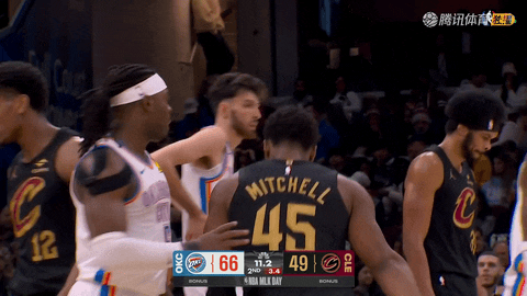 比赛开始还剩11分43秒时,米切尔突破挑篮命中,为骑士先拔头筹。