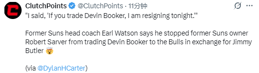 北京时间12月20日,前太阳队主教练厄尔-沃特森在播客节目中表示,自己曾以辞职威胁,阻止球队用布克交易巴特勒。