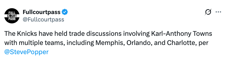 北京时间1月20日,据尼克斯队记Steve Popper报道,尼克斯已经与多支球队就涉及唐斯的交易进行了讨论,这些球队包括孟菲斯灰熊队、奥兰多魔术队和夏洛特黄蜂队。