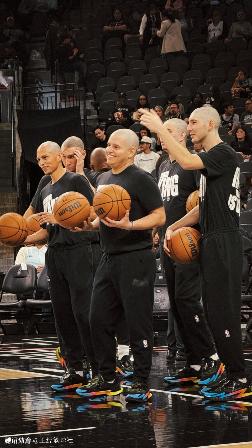 有趣的是,虽然目前仅有凯尔登一位队友陪同他剃光头,但是马刺队的工作人员已经有多人效仿文班亚马剃了光头。