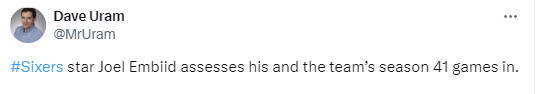 在谈到76人队在常规赛前41场比赛中的表现时,恩比德说道:“说到球队的整体情况,我们这个赛季经历了太多起伏。失利固然令人痛心,毕竟输球的滋味不好受,但我更看重的是失利背后的收获。有些失利确实让人难以接受,但关键在于我们能否从中吸取教训,能否在失利中有所成长。”